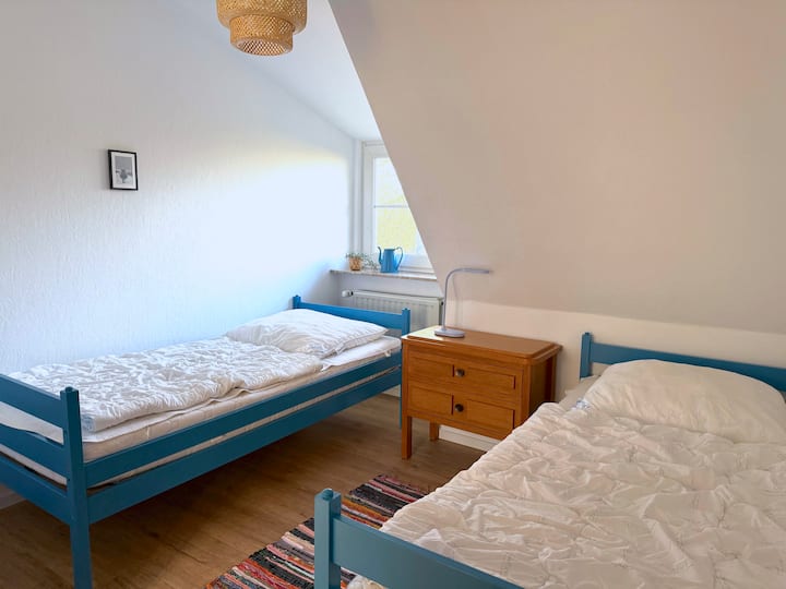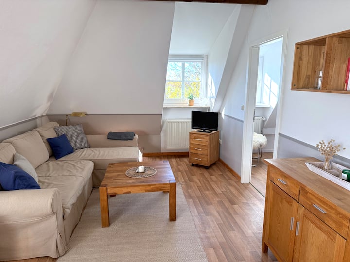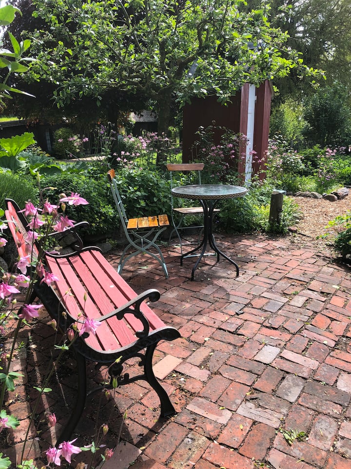 由于农场有四套公寓、一间宽敞的公共房间( Klönstube )、一个桑拿房和一个大花园,我们当然非常乐意与您分享这个美妙的地方。