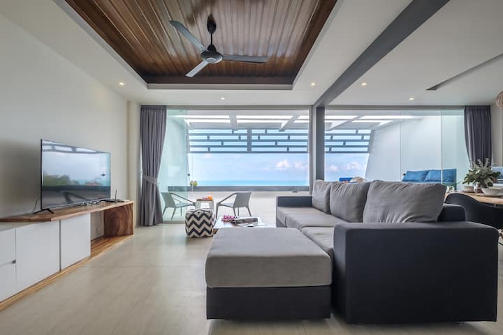 苏梅岛Plai -Ta -Wan 2卧海景泳池别墅和健身房