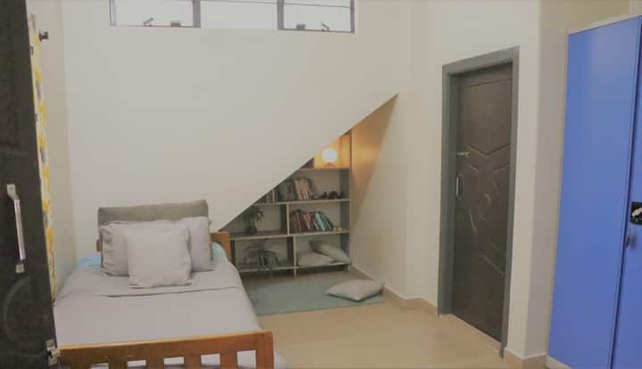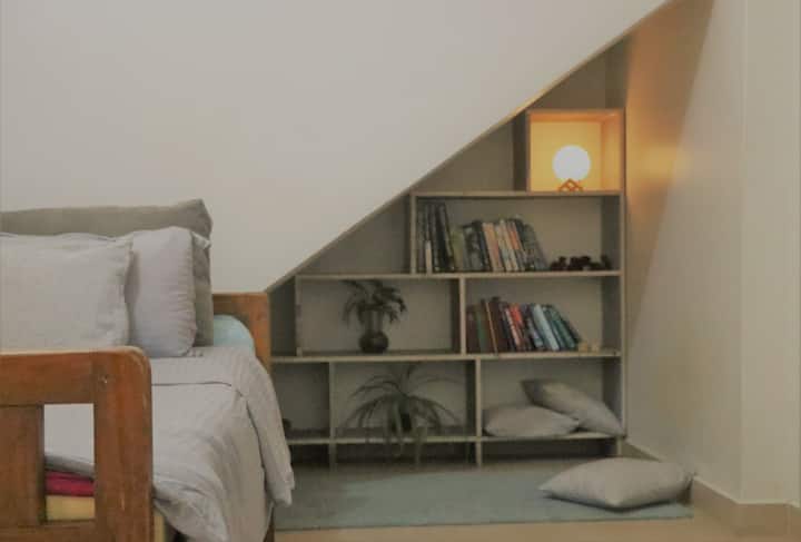 带迷你图书馆和独立卫生间的房间