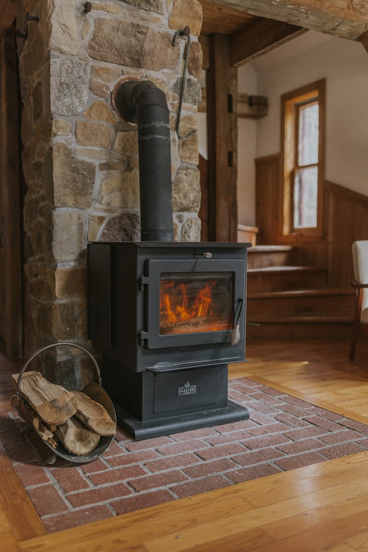 枫木小屋,带热水浴缸和壁炉的隐蔽处