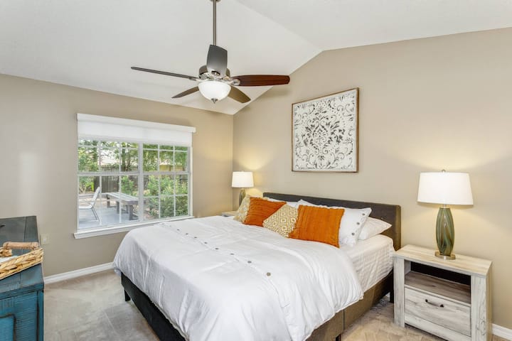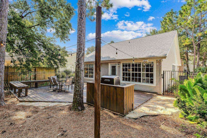 这栋经过翻新的独栋别墅坐落在美丽的Sunrunner街区。 此房源靠近彭萨科拉( Pensacola )的任何您想做的事情,但坐落在一个安静的家庭街区。 靠近机场、I-10、Bay Bluffs公园和城里最好的餐厅。 设有2间卧室、2间全功能卫生间和1张沙发床,可容纳6位房客舒适入住。 房源经过翻新,配备了所有新床铺,厨房配备花岗岩台面,卫生间配备花岗岩台面,以及所有新家具。 后院非常适合娱乐或与家人一起闲逛! 设有带长凳的大后门廊、1张6人餐桌和颗粒烤架! 整个后院都有串灯、火坑和Polk音响蓝牙扬声器,供您享用! 停车场很方便,可停一辆车,车道上还有额外的停车场。 带上您的自行车、皮划艇、桨板或其他任何您想存放在车库里的东西。 请立即预订Sunrunner小屋之旅!