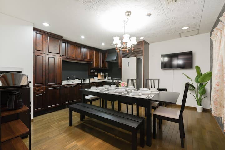 3层150平方米,最多可容纳18人,靠近花园町站,距离难波2站,靠近超市。