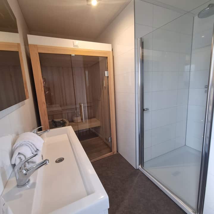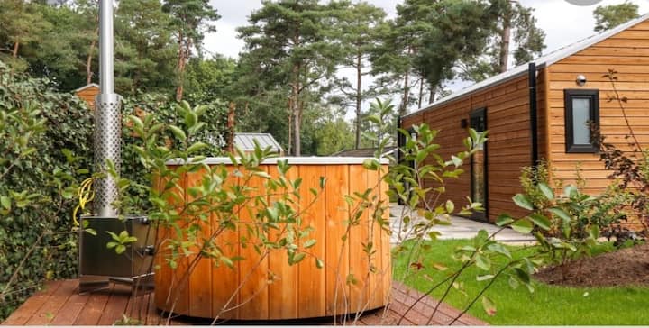 小型健康小屋,配备桑拿和热水浴缸|Veluwe。
