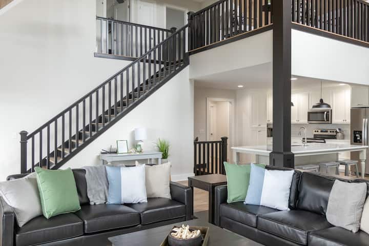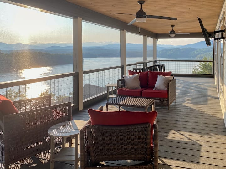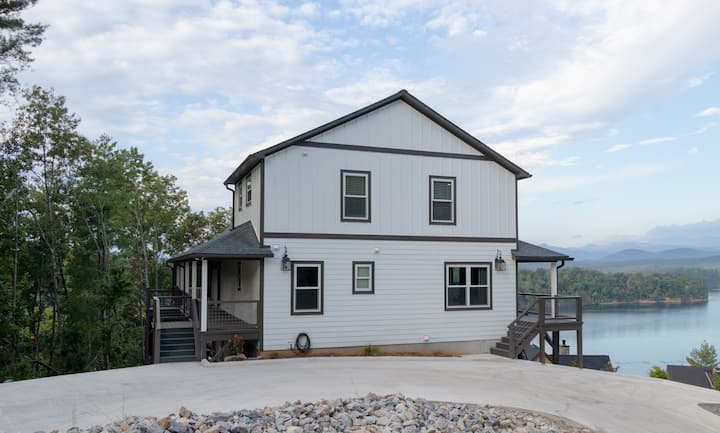这栋全新的房子可俯瞰詹姆斯湖和北卡罗来纳州西部山脉的全景。 从房源的每个房间都可以欣赏到美景。 在我们的环绕式门廊下坐下,尽情享受美景。 在我们的后门廊上与家人和朋友一起享受,或在阿迪朗达克椅子的火坑旁享用烤棉花糖夹心饼干。 每个人都可以在地下室玩乒乓球、沙狐球,或者坐下来观看比赛。 空间充裕,适合全家入住!