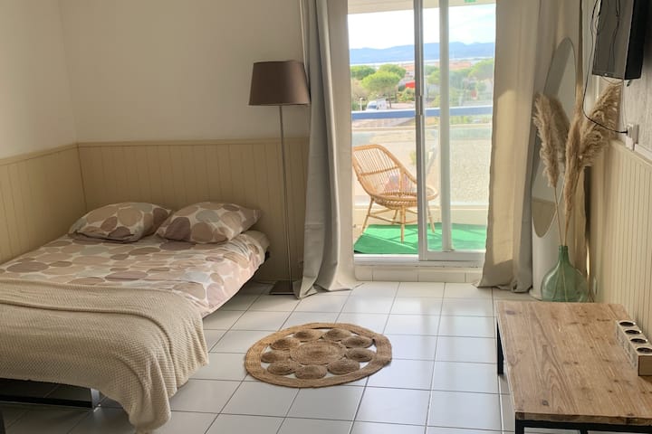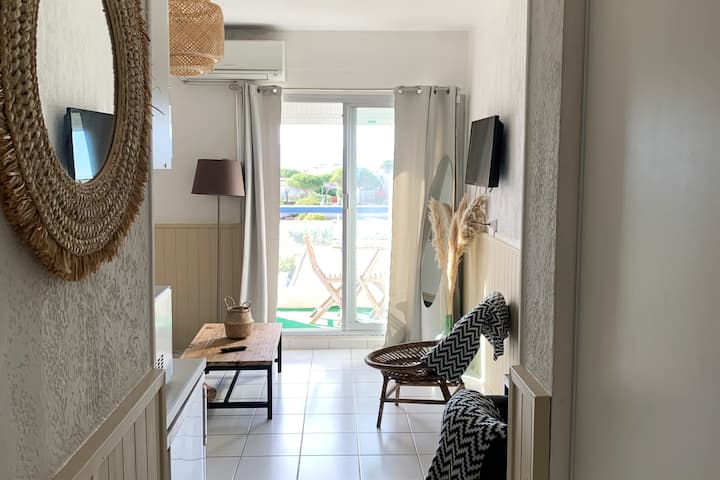 迷人的海滨单间公寓+游泳池
