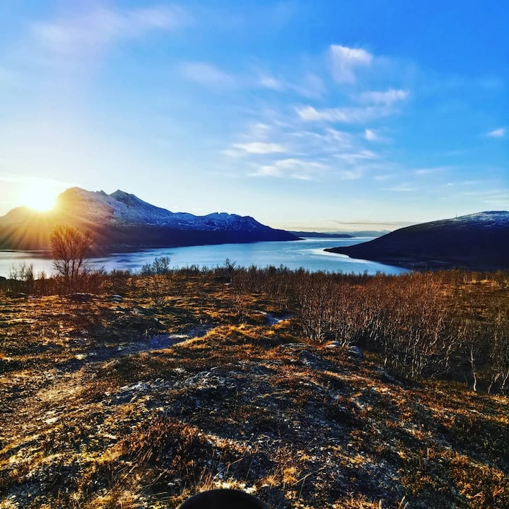 房源周围风景优美,因此您可以体验北极光、山地徒步旅行或在露台上的火坑周围度过安静的夜晚。