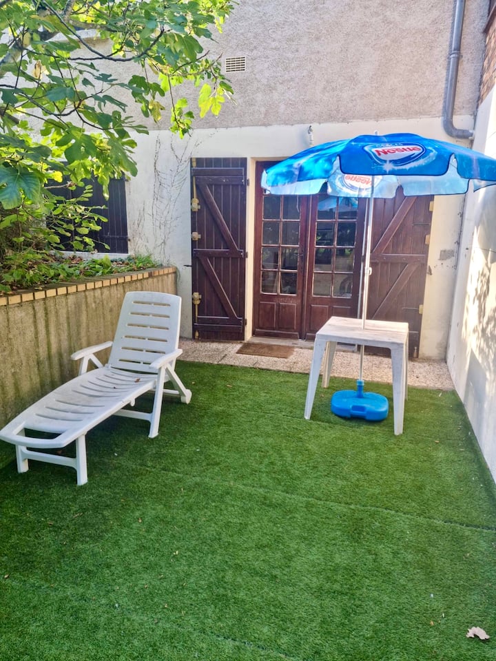 绿树成荫的花园中的两室住宅