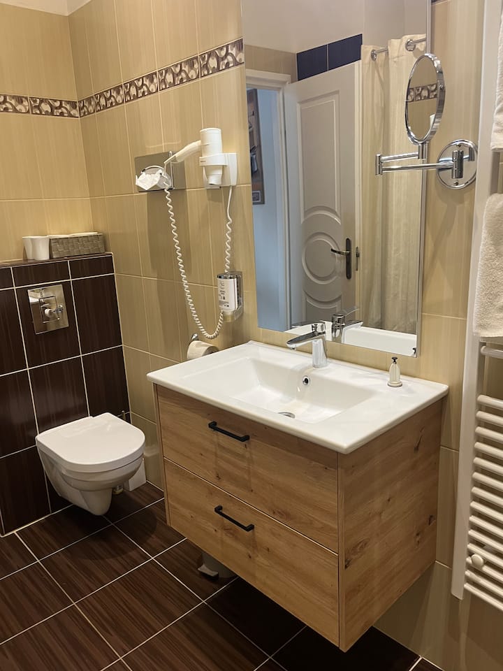 每间公寓1间卫生间, 1间厨房。 相互连通的门可以让您一起入住,也让您在关闭时享受自己的公寓。