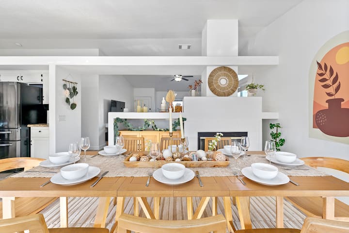 正在寻找适合您的团体的完美房源? 别再看了,我们的大型4卧2卫在等着您! 我们时尚宽敞的房源坐落在印第奥街区,是完美的团体度假胜地。 只需短途前往棕榈泉市中心,或在我们的私人后院享受我们的火坑、烧烤架、泳池和水疗中心。 此房源拥有滑雪球、全新电器、宽敞的室内用餐空间、多台带Hulu的电视、Netflix、迪士尼+、Youtube电视和大量娱乐活动! !