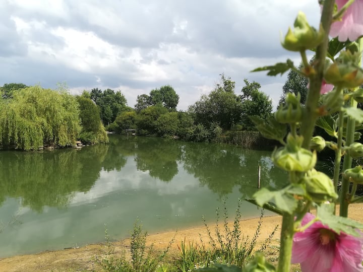 宁静的住宿,面积为70平方米。 在池塘边为全家人提供放松的住宿体验。