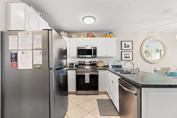 这套位于北默特尔海滩(North Myrtle Beach)的公寓位于大西洋的沙滩上,是一处可爱的北默特尔海滩公寓楼,这套双卧室、双浴室的北默特尔海滩公寓非常适合计划北默特尔海滩度假的家庭、高尔夫球友或女孩团体入住。 当您选择这个北迷特尔海滩(North Myrtle Beach)租赁房源时,您会发现在北迷特尔海滩(North Myrtle Beach)期间所需的一切便利都触手可及。 除了配备齐全的厨房,为房客准备餐点所需的所有电器,这座北迈尔特尔海滩公寓还配备了洗衣机和烘干机,方便您轻松研究这座北迈尔特尔海滩公寓楼附近的景点、订购表演门票、预订晚餐或在南卡罗来纳州这个地区的一个美妙球场上获得开球时间。