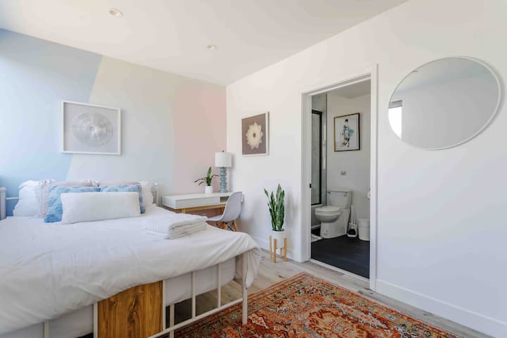 This unique place has a style all its own, nested in the charming city of East Hollywood. It is walking distance from many restaurants, cafes, and a few lovely bakeries that are perfect for an early morning coffee/breakfast. It has easy access to the Hollywood 101 freeway.