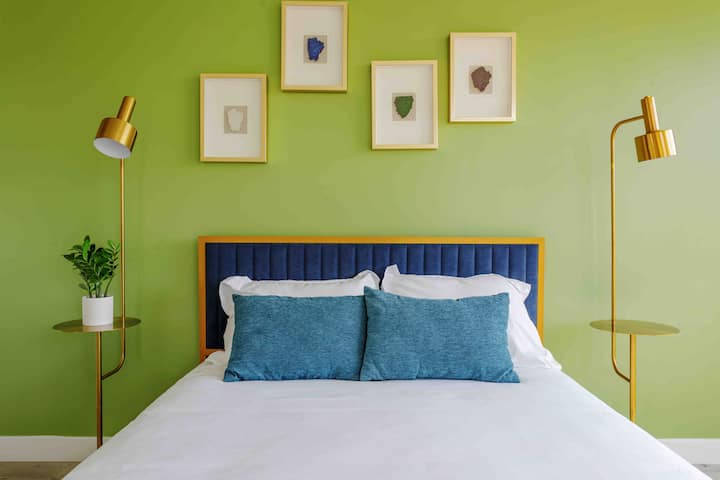 Beautiful abundance in natural lighting throughout the entire floor plan of the modern designed townhome. Warm pink colors in the dining room kitchen area. Imagine yourself here relaxing with good conversation and a glass of rosé. The water pressure in the bathrooms are set to perfect setting. Queen bed mattresses with soft cotton bedding included in all of the bedrooms.