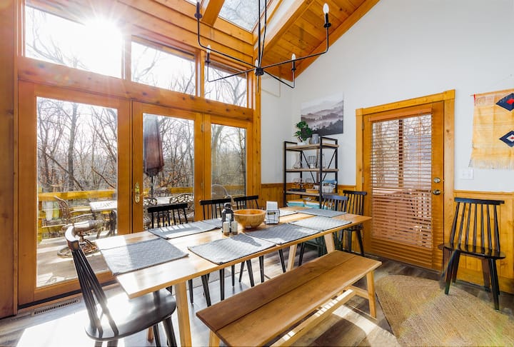 早上在燃气壁炉旁品尝咖啡,然后每天晚上在热水浴缸中热身! 享受街机游戏、棋盘游戏、空中曲棍球和飞镖的友好比赛。 凭借8张便利卡,您可以进入业主俱乐部游泳和锻炼,包括室内匹克球拍和球! 在这个宁静的天堂体验放松和冒险,让您度过难忘的假期!