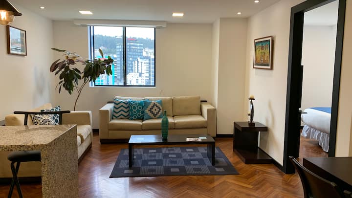 我们的公寓位于基多最好的区域,Av Republica del Salvador。 非常靠近La Carolina Park、购物中心、餐厅和咖啡馆。