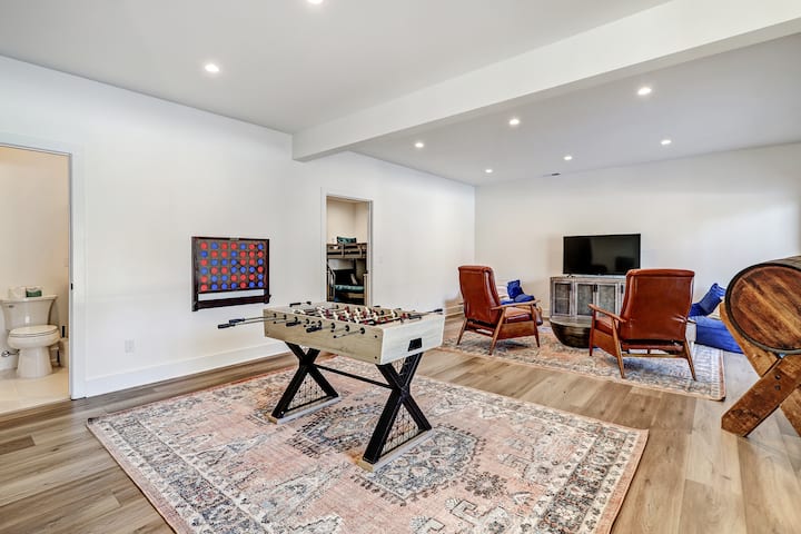 室内生活:游戏室、燃木壁炉、全尺寸洗衣机/烘干机、智能电视