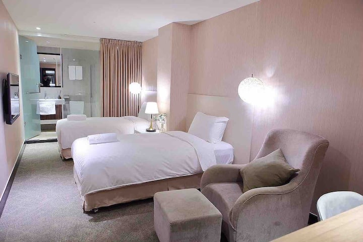 西門Ximen MRT6號出口3分鐘無窗雙床房(淋浴)