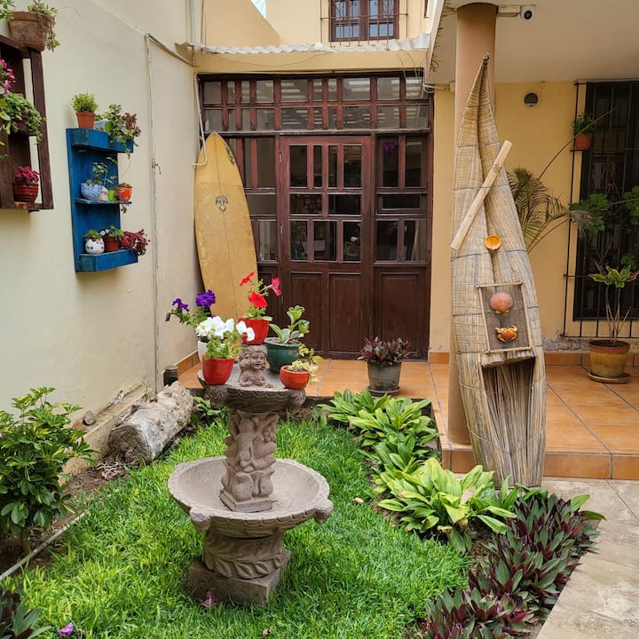 我是一名妻子和母亲,我们住在秘鲁北部的一个小型但非常特别的水疗中心,我丈夫喜欢冲浪,我喜欢与来自世界各地的人们烹饪和聊天。 我们有一个女儿,我们喜欢结识很多人,喜欢环游世界! ! ! 出于同样的原因,我们知道旅行者喜欢什么……例如,他们在大堂等候入住是不能忍受的,所以事先协调我们可以提前接待您,以及太早退房,我们也不会批准……如果我们说话,稍后没有其他预订……我们可以在中午后等待几个小时,这样您就可以安心地离开公寓,无需支付任何额外费用……我们期待您的到来! ! !