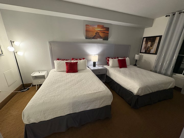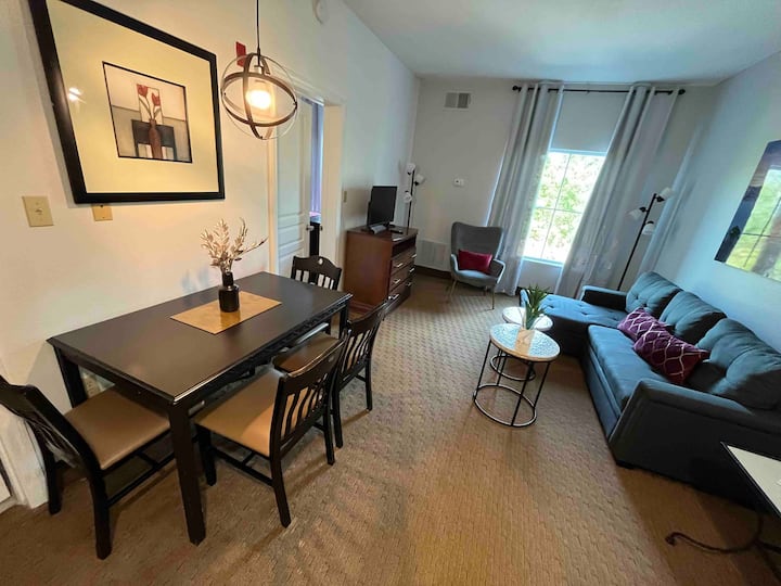 我们可爱的公寓位于奥兰多/布埃纳文图拉湖区,距离迪士尼泉水上乐园(Disney Springs)仅几分钟路程,距离华特迪士尼世界(Walt Disney World)1.5英里,距离海洋世界(Sea World)2英里,距离环球影城(Universal Studios)和新的EPIC主题公园5英里。 包括:温水泳池、按摩浴缸、健身房、现场洗衣、烧烤区和披萨烤箱、游戏室、婴儿车租赁、制冰机、篮球场