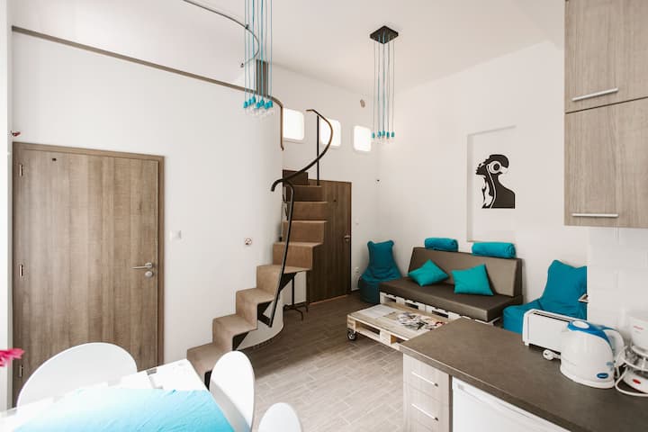 因此,我决定与同事们一起介绍这座可爱的城市,尽可能多的人。 我们在市中心提供五套单间公寓,每套45平方米,最多可入住6人。