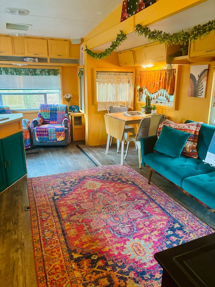 欢迎来到我们砖砌牧场住宅后面的石山/迪凯特地区的独特私人房车房源。 露营车位于2英亩的私人后院,靠近迪凯特市中心和亚特兰大( Pinelake社区) ,距离石山公园( Stone Mountain Park )仅几分钟路程! 特点:全尺寸房车马桶、宽敞的全尺寸淋浴、带半尺寸冰箱和冰柜的厨房,以及中央空调/暖气。 我们的露营车经过了全面翻修,感觉像是靠近市区的温馨/复古度假胜地!