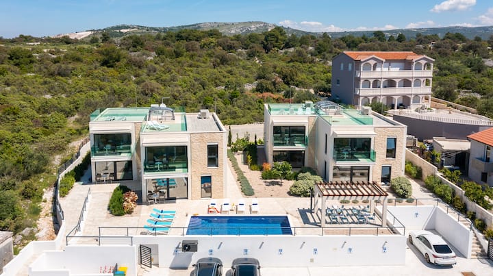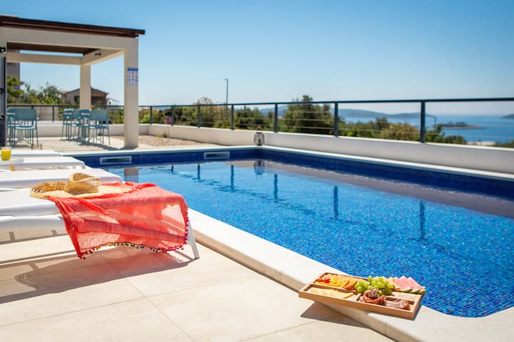 泳池和海景!完美的假期