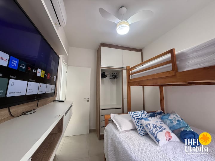 我叫Thel ,来自SP内部的Mirassol商人20多年。 2014年,我从2010年开始在自己的房子里出租季节,开始帮助我的邻居,让房客也能保持身体健康。 今天,我在乌巴图巴拥有30多处房源,其中大多在Praia Grande、Toninhas、Tenorio和Itaguá ,度假屋赢得了我的心、朋友和忠实的房客。
