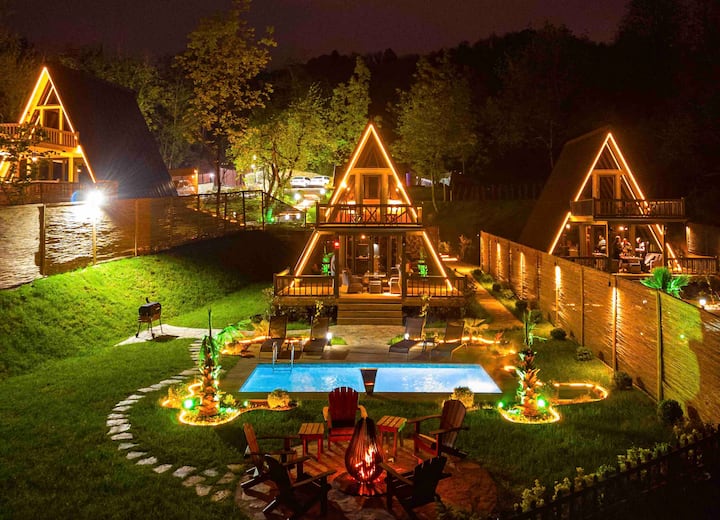 加热泳池湖景