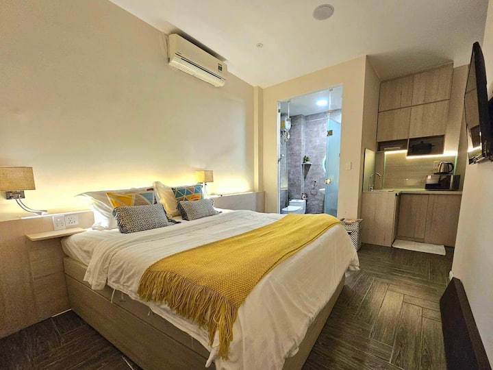 这是隐藏的城市别墅景点,位于市中心,没有喧嚣,独特的街道没有雨水,位于传统别墅区「典型的西贡建筑」,毗邻大型公园,空气新鲜。