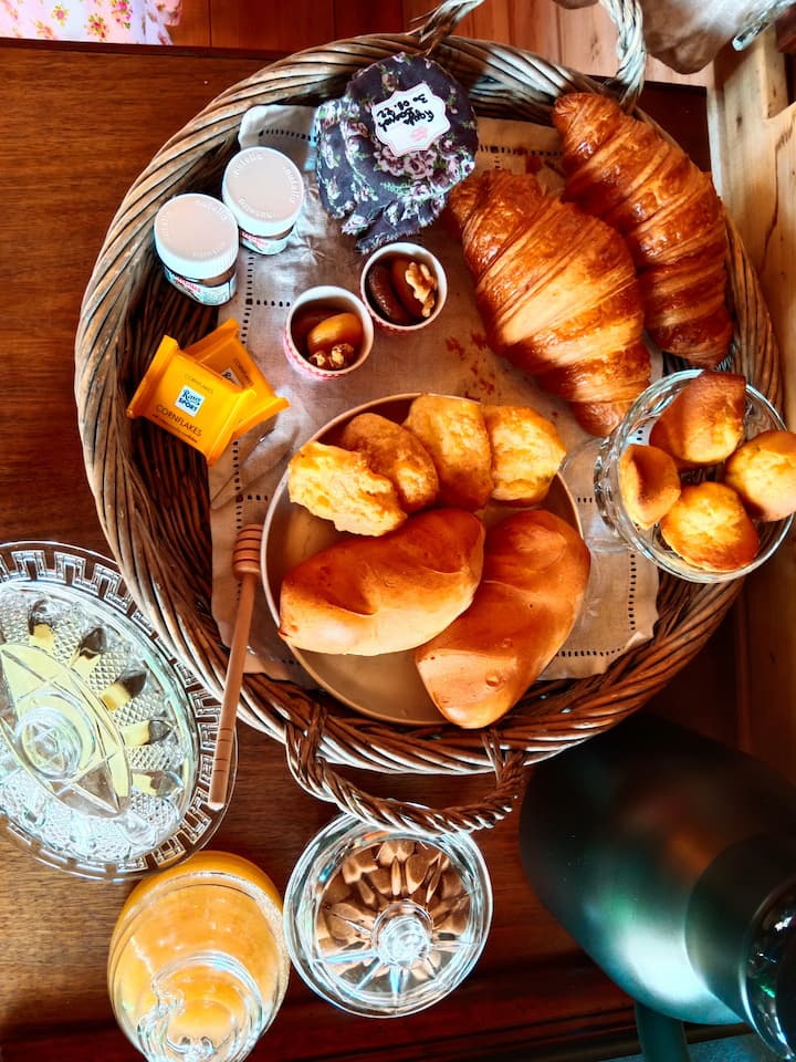 享用早餐和咖啡