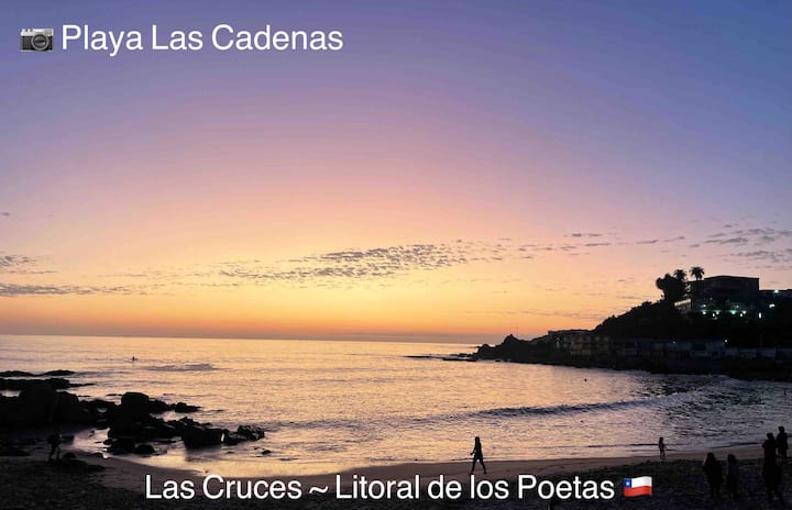 Cabañas Patito的房东和房东,位于Tabo的Las Cruces水疗中心。