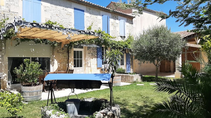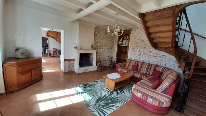 这栋舒适的夏朗德房屋位于大西洋海岸的海滩和Saintonge Romane的中心地带,位于圣安德烈德利登村( Place de l 'église ) ,正等着您。当地商店和餐厅距离市中心仅几步之遥。 探索丰富的罗马遗产,以及靠近大西洋一侧的所有海滩、沙丘和森林( Meschers、Royan、Ile d 'Oléron和Ré )。 与您的家人一起享受这个非常愉快的住所。