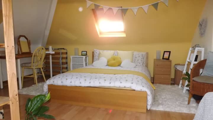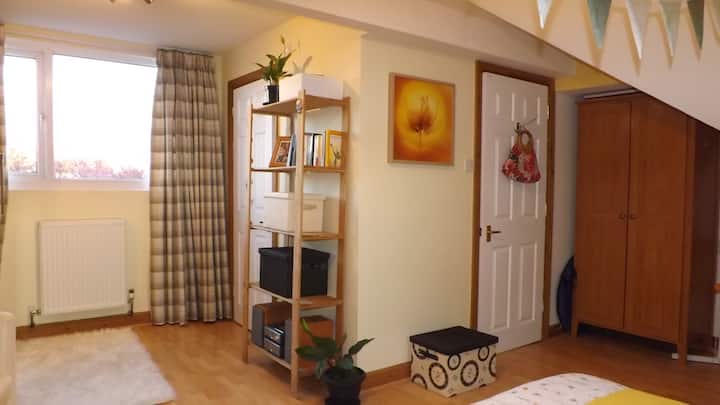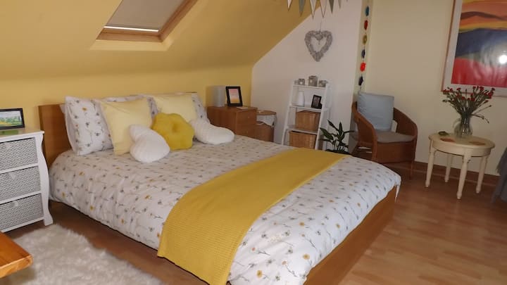 安静明亮的阁楼双人套房。