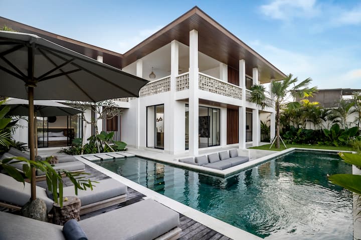远离日常生活的喧嚣,步入巴厘岛佩雷雷南(Pererenan)市中心的宁静天堂。 这栋令人惊叹的4卧室别墅拥有精美的设计特色,奢华与舒适完美平衡。