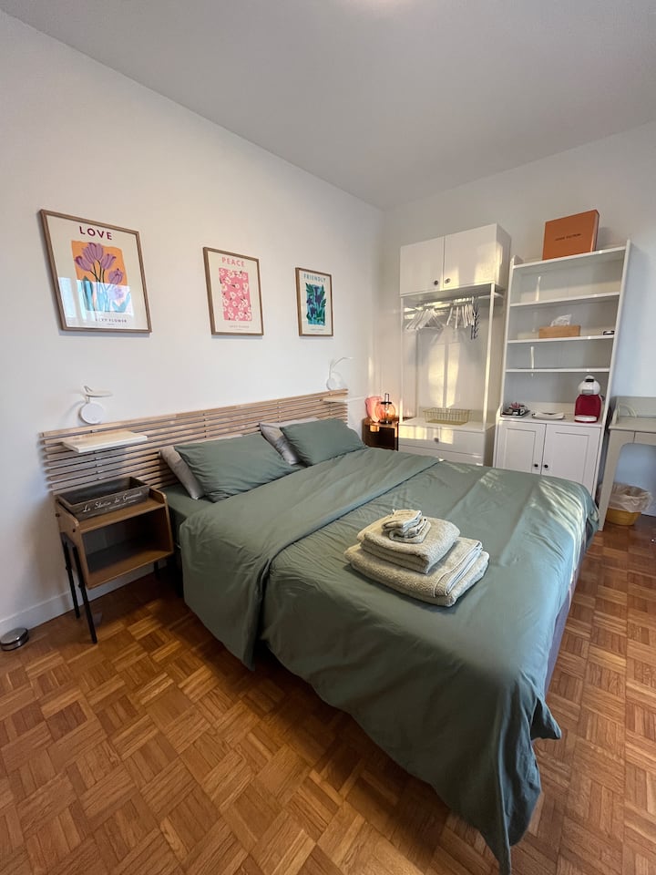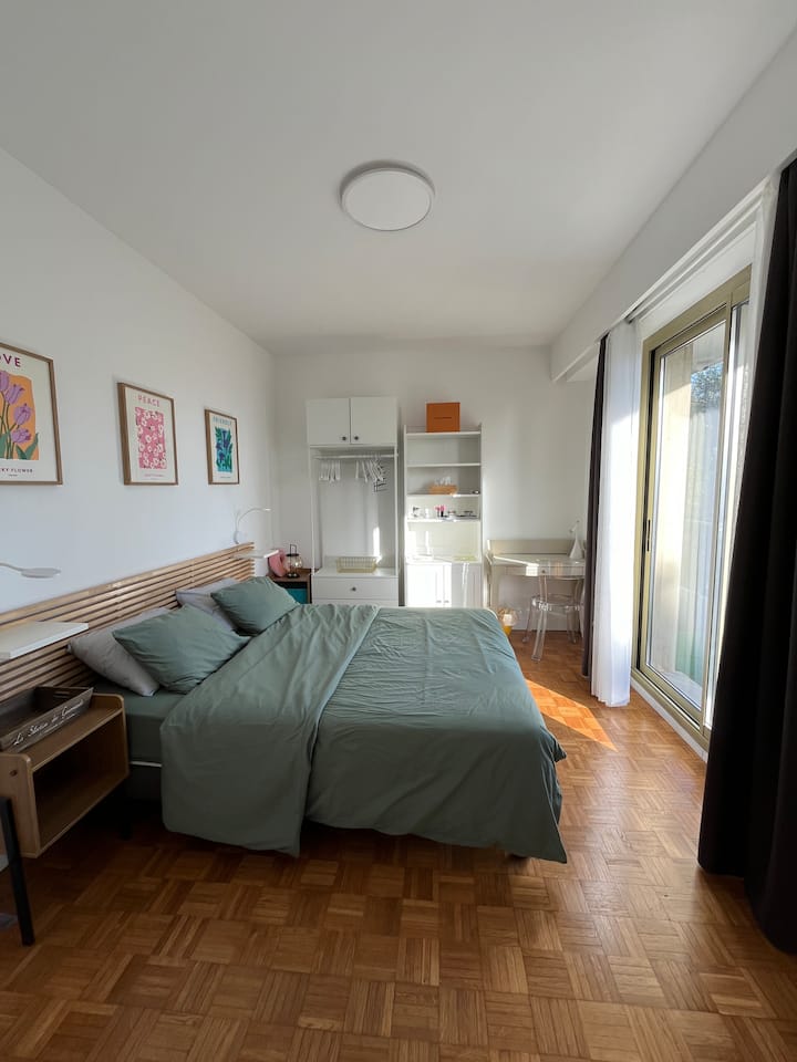 带卫生间和厨房的超棒房间。