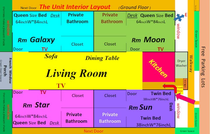 整栋住宅中的一个独立房间,以及共用区域。