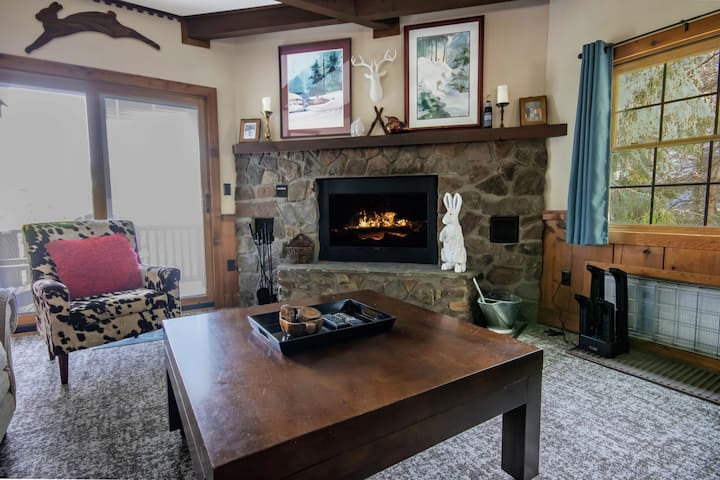 这栋迷人的双卧室联排别墅设有宽敞的厨房,配有可叠式洗衣机/烘干机、燃木壁炉、独立的用餐区和宽敞舒适的起居室,您可以在山上忙碌而令人兴奋的一天后,您可以在这里放松身心。