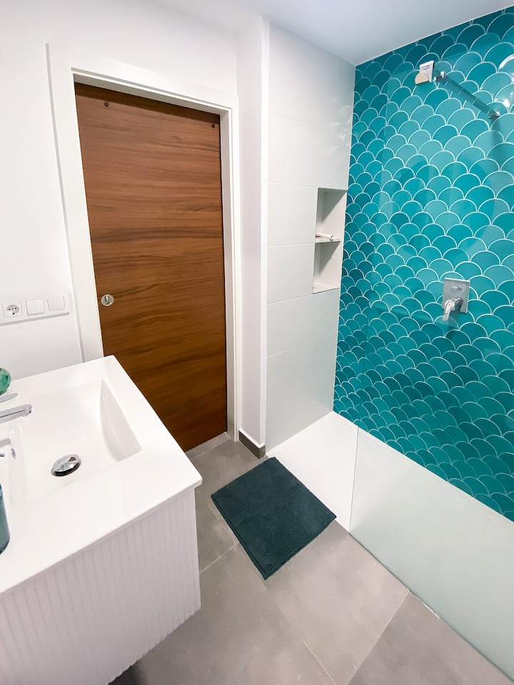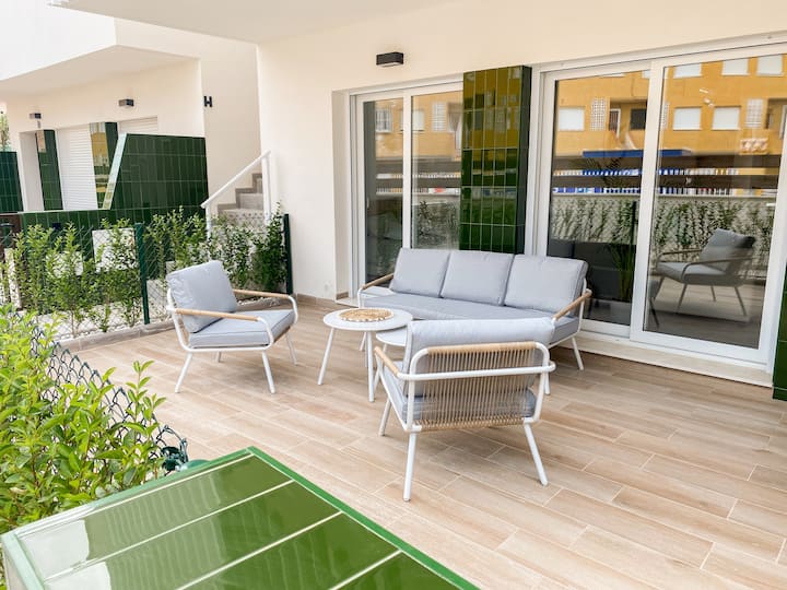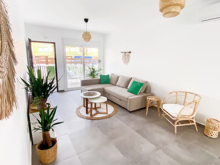 公寓距离海边50米,配备泳池、空调和停车场