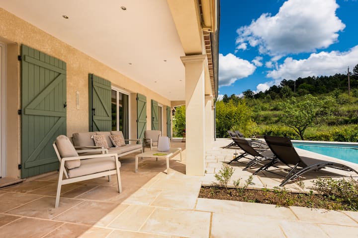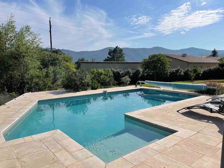 别墅带私人游泳池和法式滚球场。