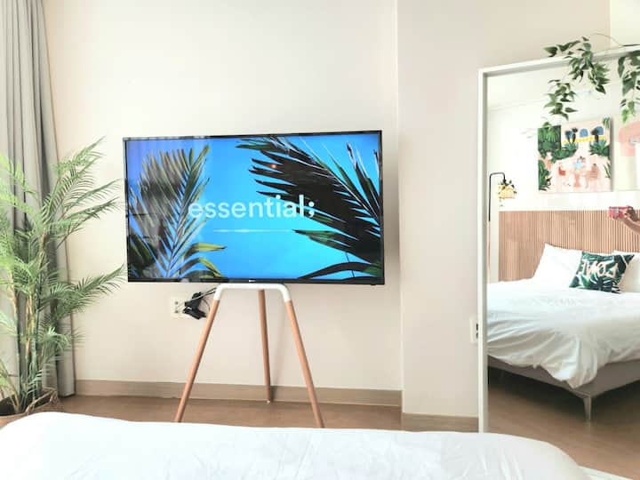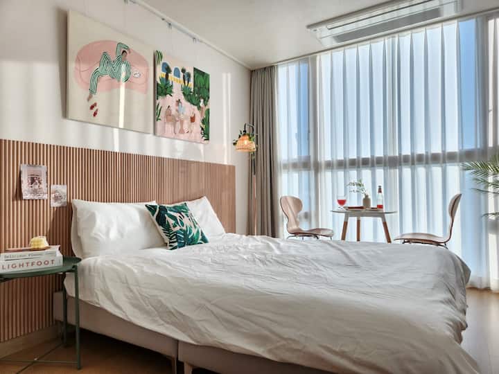 2号线、9号线当山站2分钟!距离机场巴士站2分钟!可直达弘大、东大门!