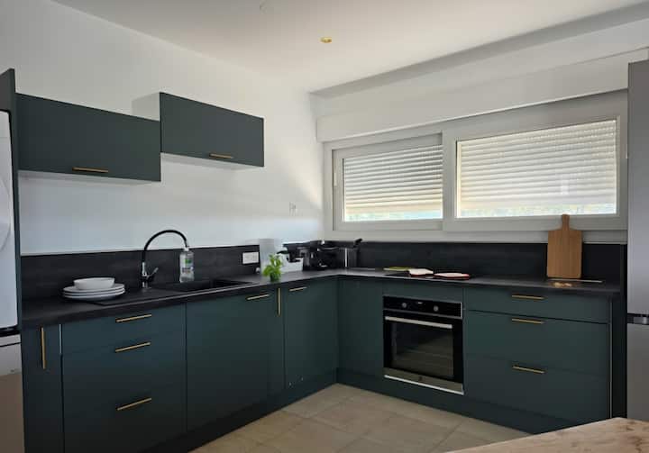 步入室内,您会发现宽敞、明亮、宽敞的起居区,非常适合放松身心。 全新、设备齐全的开放式厨房让备餐变得轻而易举,配备传统烤箱、电磁炉、洗碗机、带冷冻功能的冰箱、水壶以及浓缩咖啡机和过滤咖啡机。 为了您的方便,还配有一台洗衣机。 提供最多可供8位房客使用的所有必要餐具。