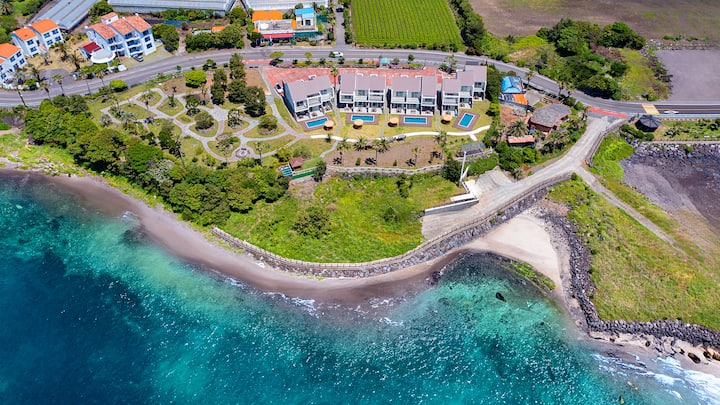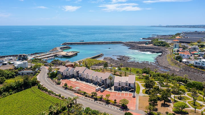 济州海洋连栋别墅_17平1层套房(单间公寓(标准双人床)+厨房+浴室+露台)、海景、室外游泳池