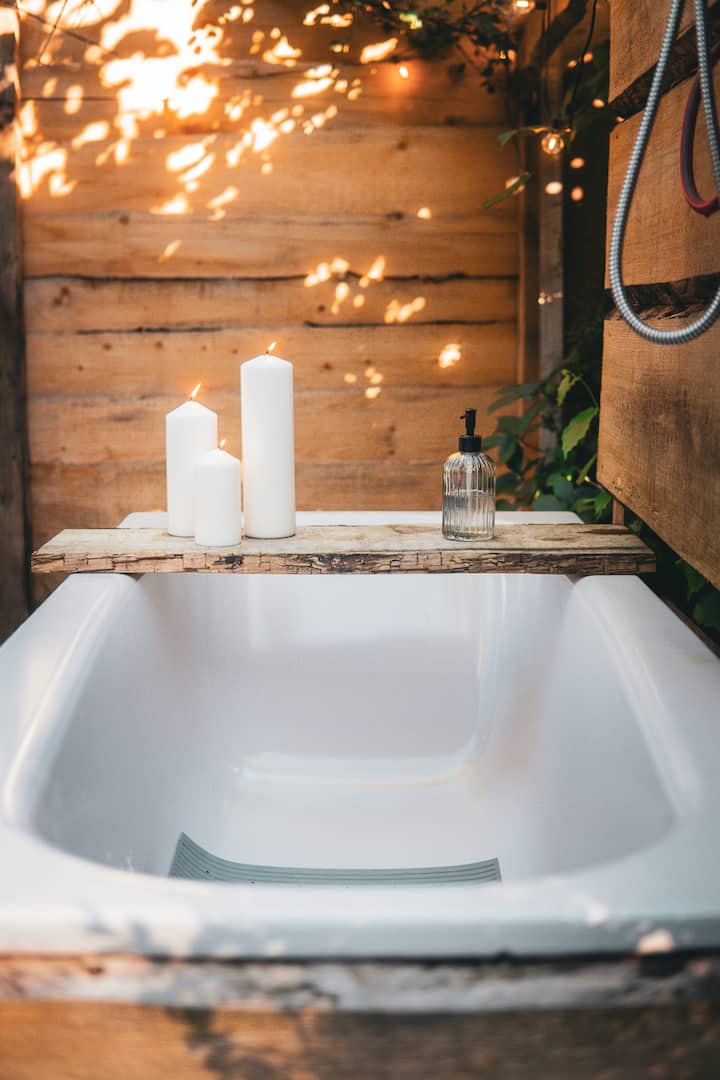 带热水浴缸的豪华露营小屋(可选预订)