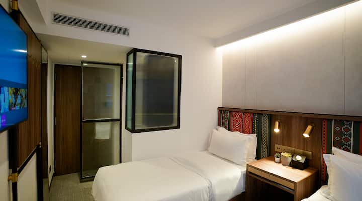 全新带窗户的双床房,位于Bugis Junction