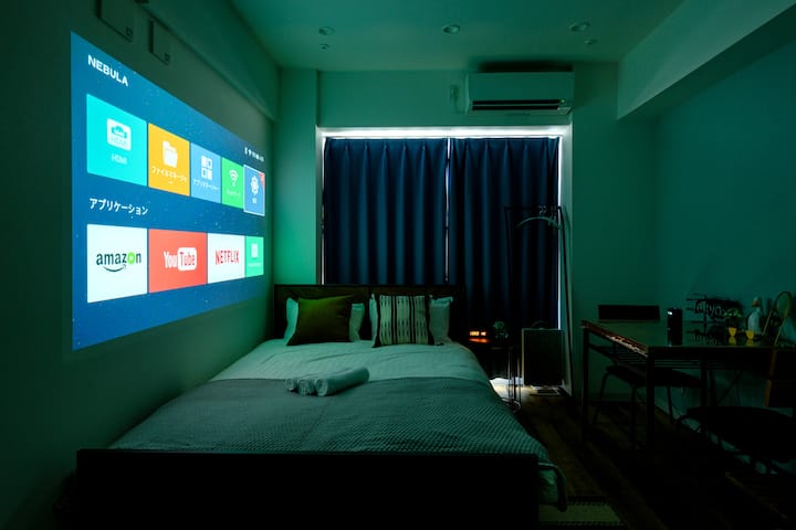 非常适合长期住宿、独行旅行者或情侣旅行者。 包括洗衣机、阳台、投影仪和一张办公桌。