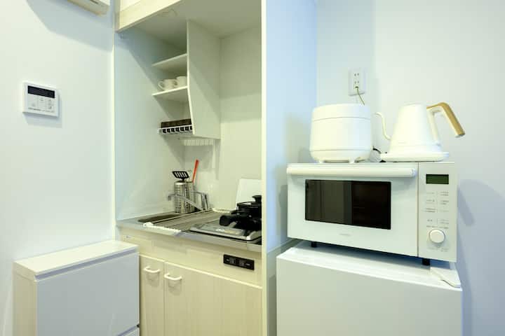 温馨的公寓,配备设备齐全的厨房,非常适合喜欢在旅行时烹饪的房客。 距离新桥8分钟,靠近银座,前往东京的餐厅和商店非常方便。