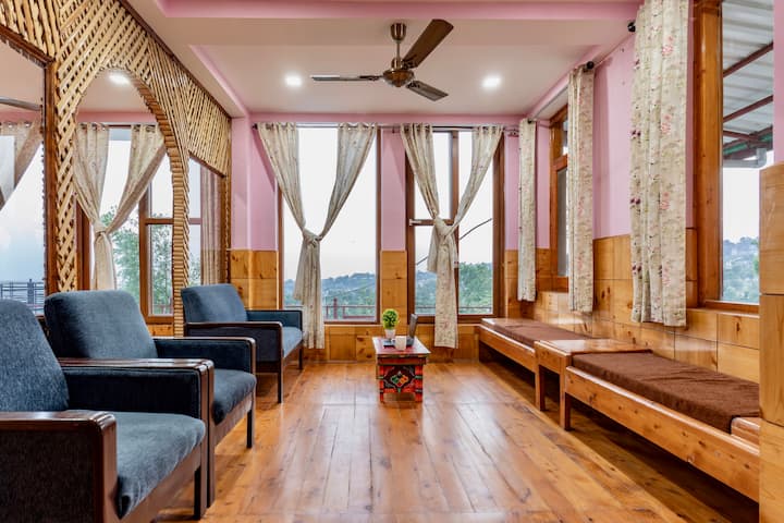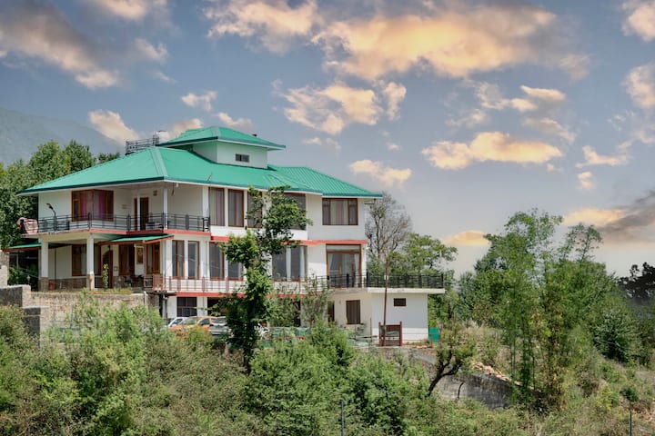 与亲朋好友一起喝杯茶,欣赏达兰萨拉山谷令人叹为观止的美景。 Aashray别墅是一座天堂般的住宅,四周环绕着绿化和树木。 非常适合团体度假、情侣和家庭入住,您可以无忧无虑地抵达此房源,享受室内游戏和篝火等娱乐活动。