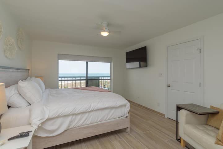 宽敞的设计师海滨公寓,可容纳8人,享有无遮挡的海景,位于南帕德雷岛最大的门禁度假村,有24小时安保。