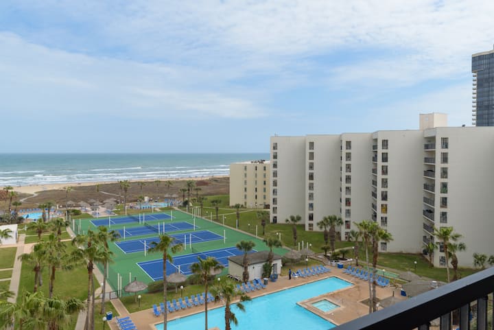 Saida度假村的美丽维护场地提供3个泳池(一个加热泳池)、3个按摩浴缸、沙狐球、4个网球场、池畔小吃亭和Palapa酒吧,以及两条直接通往南帕德雷海滩柔软沙滩的木板路。 为了您的便利,Saida Royals前台还为所有Saida房客提供网球拍和球。 标志性的Saida综合体距离Padre Blvd的几个购物场所和餐厅仅几步之遥,但开车或骑自行车即可抵达其他娱乐场所。 最后,设有2个停车位,为您的南帕德雷岛(South Padre Island)度假之旅增添了最后一笔,让这里成为您无忧无虑的理想地点