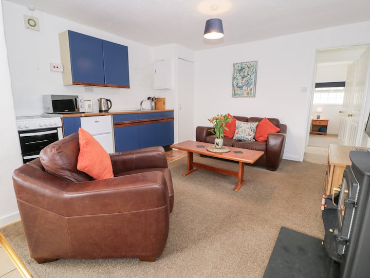 单层,可欣赏美丽的海景和乡村风光。 一楼双人卧室。 浴室配有浴缸、淋浴间、洗脸盆和马桶。 开放式起居空间,配备厨房、用餐区和起居区,电热水器。 电烤箱和炉灶、微波炉、冰箱。 无线网络、带Freeview的智能电视,房客只需拥有自己的Netflix/iplayer账号,请在出发前退出登录。 休息室配有燃木炉和游戏。 燃料和电力、床上用品和毛巾,包括租赁。 可应要求提供高脚椅和旅行婴儿床。 提供2个停车位。 花园内有草坪、凸起的露台和野餐长凳。 欢迎两只行为良好的狗。 距离河流约1/4英里。小屋附近还有一条步道,可带您前往海滩,约1英里。 抱歉,禁止吸烟。距离商店1.3英里,距离酒吧0.7英里,距离海滩1英里。 注意:下午4点后入住,上午10点前退房。 请注意:花园不是完全封闭的。 提供木柴炉和起动器包,以及合理的木材使用量,房客还可以在外出时购买更多。